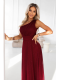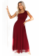 Elegantní bordó večerní šaty na jedno rameno s leskem. Polský výrobce Numoco. Objevte ženský střih a smyslný styl pro výjimečné příležitosti.