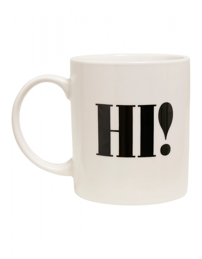 Tento šálek kávy s originálním potiskem nabízí dobrý začátek každého dne. Na jedné straně jasné „Ahoj!" nápis velkými písmeny je doplněn nápisem "Bye" ve stejné typografii na spodní straně. Rukojeť šálku je velká a je vyrobena z keramiky.