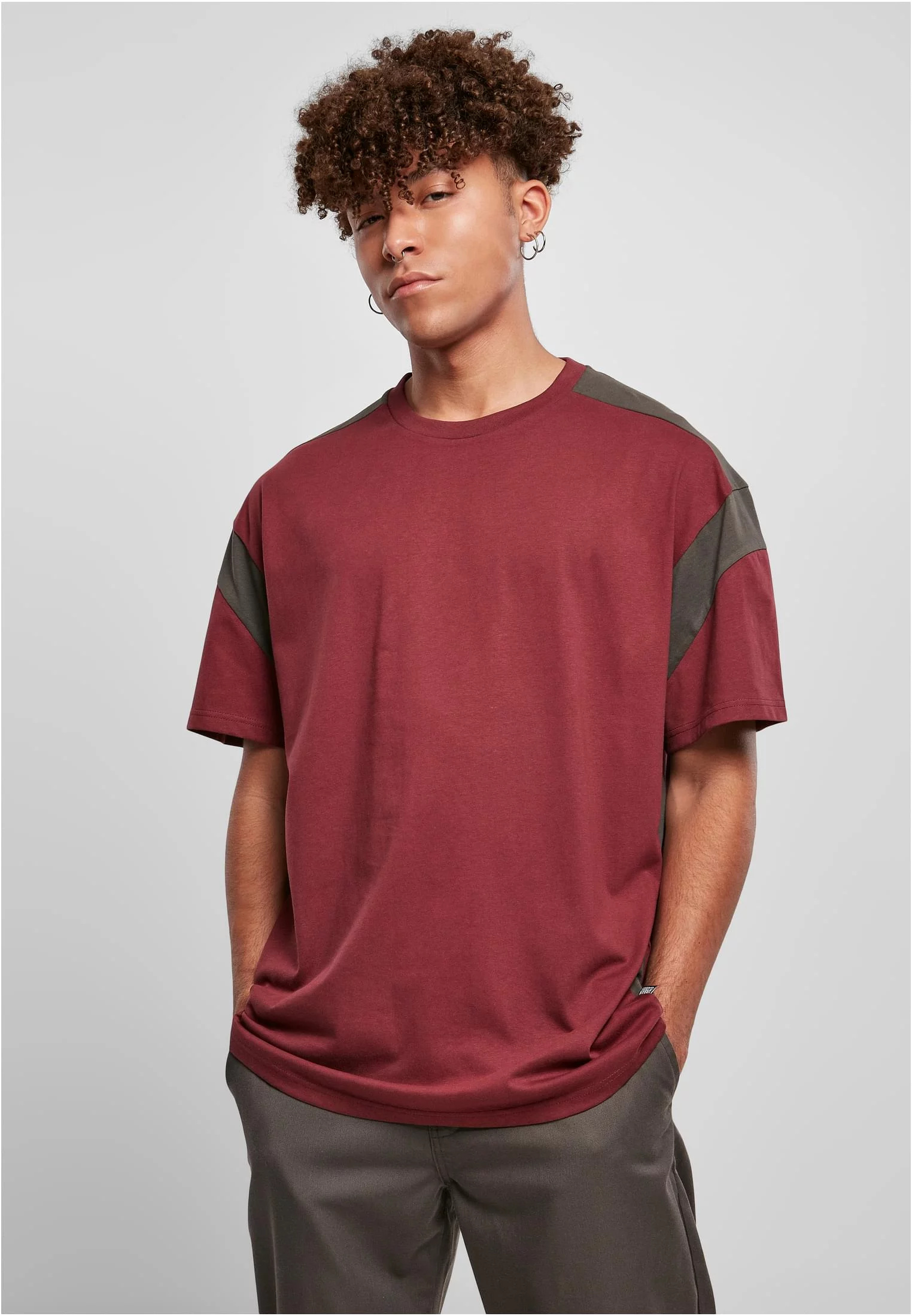 Sportovní pánské tričko s propracovanými vsadkami v kontrastní barvě na ramenou, nadloktí a podél bočního švu. Oversize střih se spadlými rameny a žebrovaným výstřihem dotvářejí vzhled. Pánské tričko je vyrobeno z pohodlného single jersey.