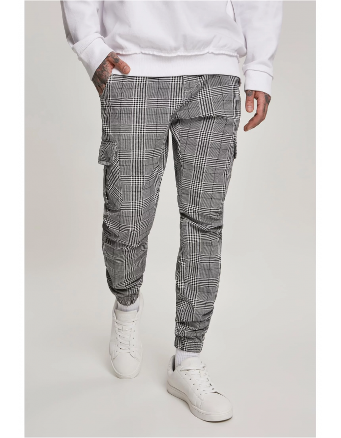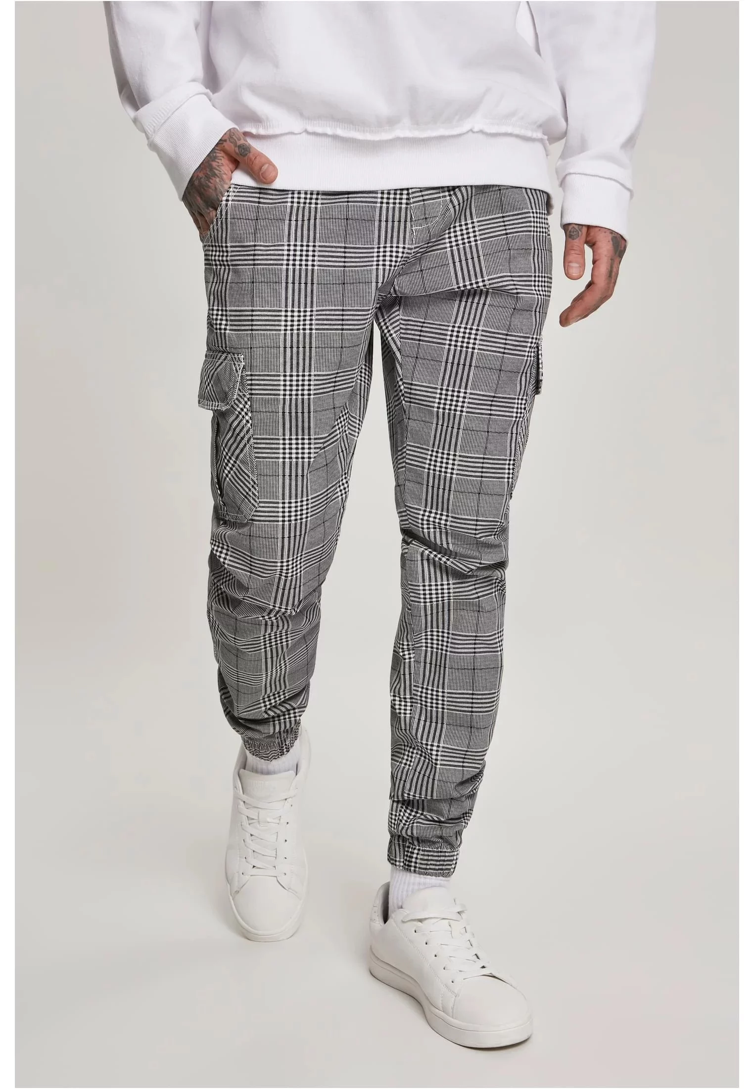 Kalhoty AOP Glencheck Cargo Jog bílo/černé