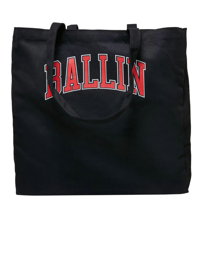 Tato nápadná a nadměrně velká taška má velký červený nápis „Ballin“ s bílým okrajem, což naznačuje, že si spokojený uživatel může snadno dovolit své nákupy. Použitá plátěná látka je stejně stabilní jako pružná a velké nosné popruhy pohodlně padnou na každé rameno.