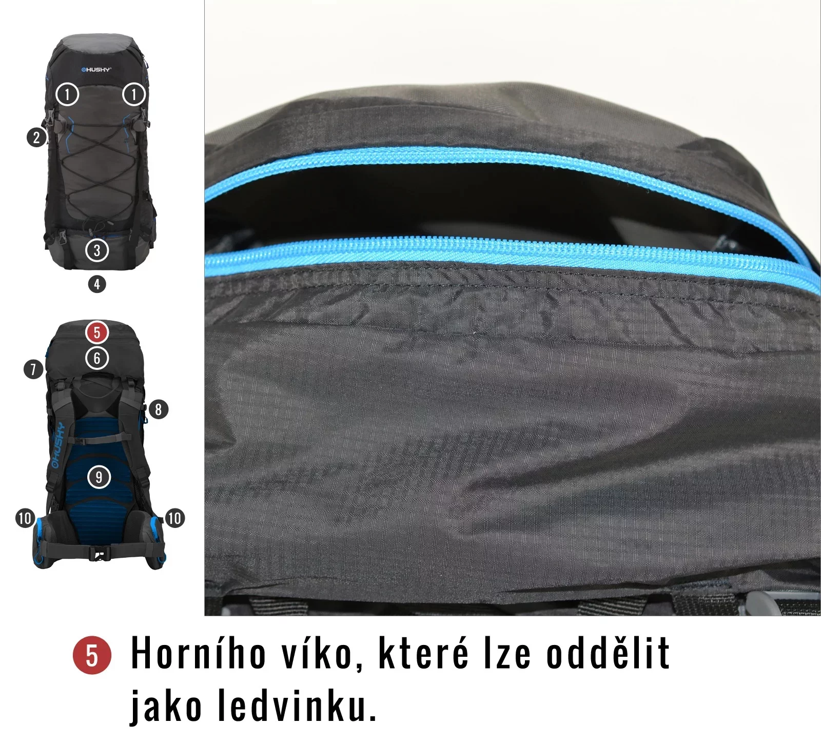 Univerzální batoh RIBON 60 L je praktický společník na cesty. Můžeš ho vzít na náročnou expedici i běžný výlet do přírody. Díky použité moderní konstrukci a kvalitnímu materiálu 420D 100T Nylon s nepromokavou úpravou je odolný a lehký zároveň. Navíc ti poskytne dostatečný prostor na všechno důležité, co potřebuješ mít s sebou. Vlastnosti: Výškově nastavitelný a anatomicky tvarovaný zádový systém DER s duralovými výztuhami. Prodyšné polstrování na anatomicky tvarovaných ramenních a bederních popruzích. Zádový systém z EVA pěny s tvarovou pamětí se přizpůsobí tvaru tvých zad. 3D prodyšná a pevná síťovina, která je pružná a antialergická. Výbava batohu Ribon:, 2 hlavní komory s bočním vstupem do batohu, elastické stahování na přední straně, hrudní popruh, boční a spodní kompresní popruh, úchyty na lyže či jinou výbavu, výškově nastavitelné horní víko s kapsou, vyjmutelné horní víko sloužící jako samostatná ledvinka, boční kapsy na zip, boční elastické kapsy, příprava pro vodní vak, pláštěnka, reflexní prvky, píšťalka.