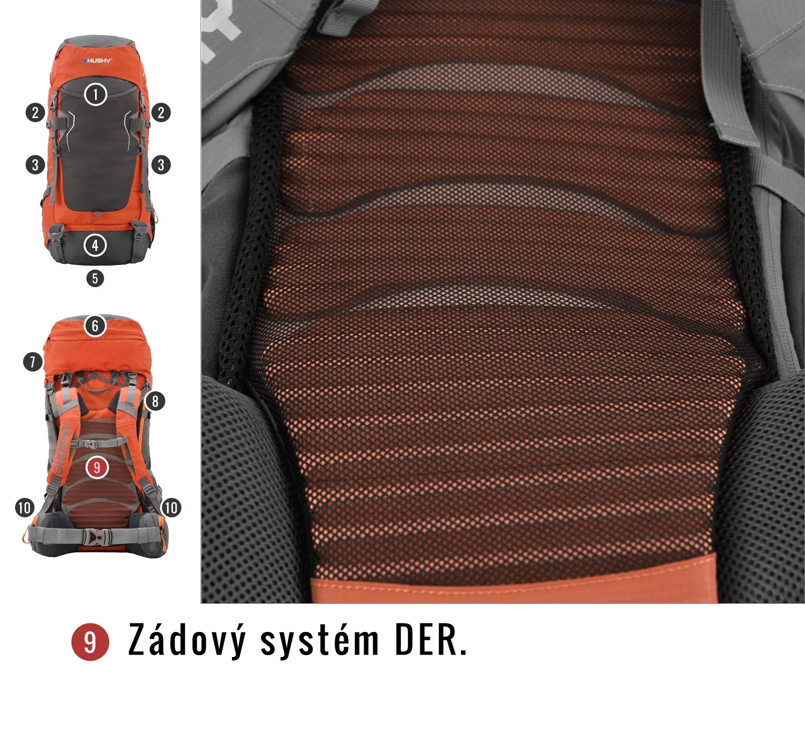 Lehký a pohodlný batoh RONY 50 l nezklame žádného turistu, výletníka či chalupáře díky použité moderní konstrukci a kvalitním materiálům odolným vůči vnějším vlivům. Překvapí tě bohatou výbavou, spoustou vnitřních prostor, kam se vejdou všechny nezbytnosti na prodloužený víkend, rovněž tak lehkostí, takže tvoje záda budou v pohodě. Vlastnosti: Výškově nastavitelný a anatomicky tvarovaný zádový systém DER s duralovými výztuhami. Prodyšné polstrování na anatomicky tvarovaných ramenních a bederních popruzích. Zádový systém z EVA pěny s tvarovou pamětí se přizpůsobí tvaru tvých zad. 3D prodyšná a pevná síťovina, která je pružná a antialergická. Výbava batohu Rony: 2 hlavní komory s bočním vstupem do batohu, přední elastická kapsa, hrudní popruh, boční a spodní kompresní popruh, úchyty na lyže či jinou výbavu, výškově nastavitelné horní víko s kapsou, vyjmutelné horní víko sloužící jako samostatná ledvinka, boční elastické kapsy, příprava pro vodní vak, pláštěnka, reflexní prvky, píšťalka.