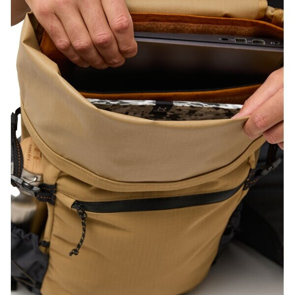 Všestranný batoh o objemu 22l nejen na Vaše outdoorové dobrodružství, ale také spolehlivý parťák na každodenní probíjení se městskou džunglí. Nabízí univerzálnost, pohodlný nosný systém a super odolnost. Svrchní materiál je 100% recyklovaný PAD s ripstopovou strukturou, který je pevný a odolný, aby vydržel i intenzivní užití. Hlavní komora je přístupná seshora přes rolovací ukončení, které umožňuje částečnou kompresi a naopak i malé zvětšení objemu v případě potřeby. Součástí batohu je samostatná pěnová výztuha z recyklované EVA pěny na ochranu notebooku, kterou lze použít jako podsedák. Z boku a ze vnitř přístupná polstrovaná kapsa na notebook o rozměru 37x2,5x25 cm.