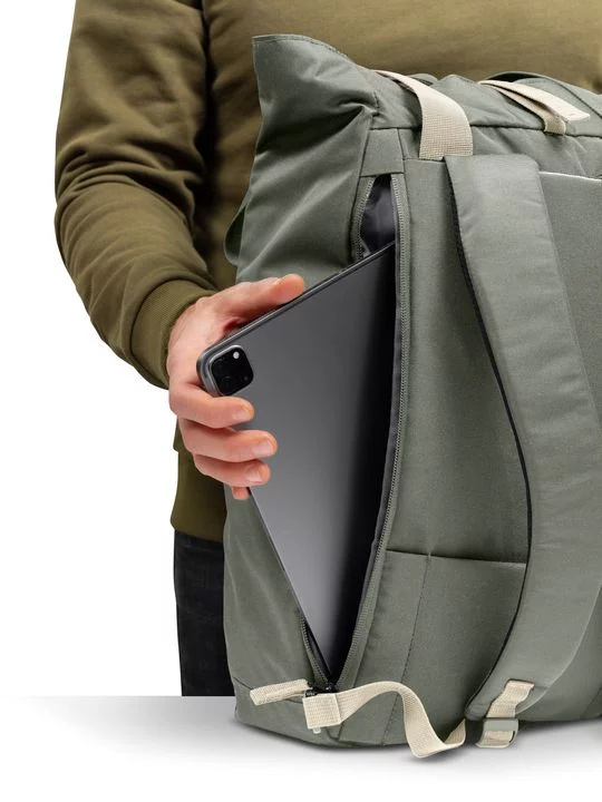 Díky sbalitelným polstrovaným ramenním popruhům a dvěma uchům lze batoh pohodlně nosit jako tašku i klasicky na zádech. Batoh nabízí prostornou hlavní komoru s přístupem přes vrchní zip a praktické boční kapsy pro rychlý přístup k lahvi nebo drobnostem. Nechybí ani polstrovaná kapsa na notebook až do velikosti 16", která je snadno přístupná díky bočnímu vstupu.