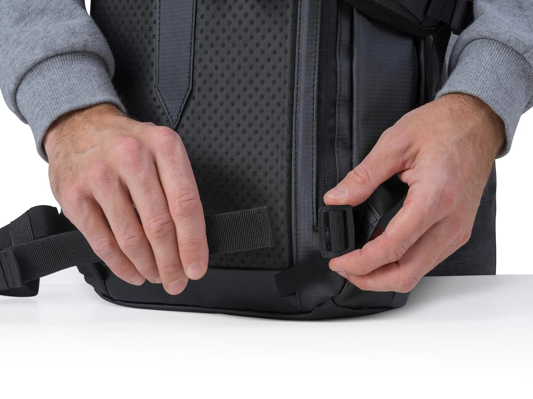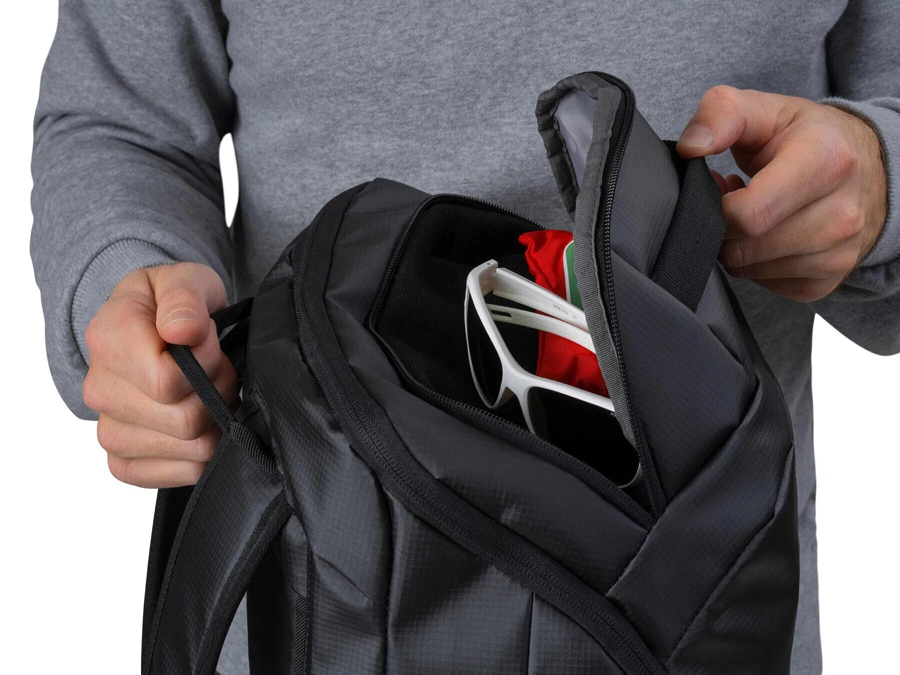 Jednokomorový batoh má nadstandardně široký vstup do batohu o celkovém objemu 30litrů. Vyztužená záda s polstrovanými ramenními popruhy, které lze spojit odnímatelným hrudním popruhem. Hlavní prostor má vyztuženou kapsu na notebook o velikosti až "16" a síťovanou kapsu na zip. Batoh disponuje množstvím různorodých kapes pro přehledné uspořádání. Skrytá zipová kapsa na zádovém panelu má nejen bezpečnostní, ale i praktický význam. Pokud vám bederní popruh bude překážet či jej nevyužijete, lze ho jednoduše odejmout. Na batohu oceníte jednoduchý čistý design, praktické vnitřní zpracování a mechanicky odolný vnější materiál s voděodolnými zipy.