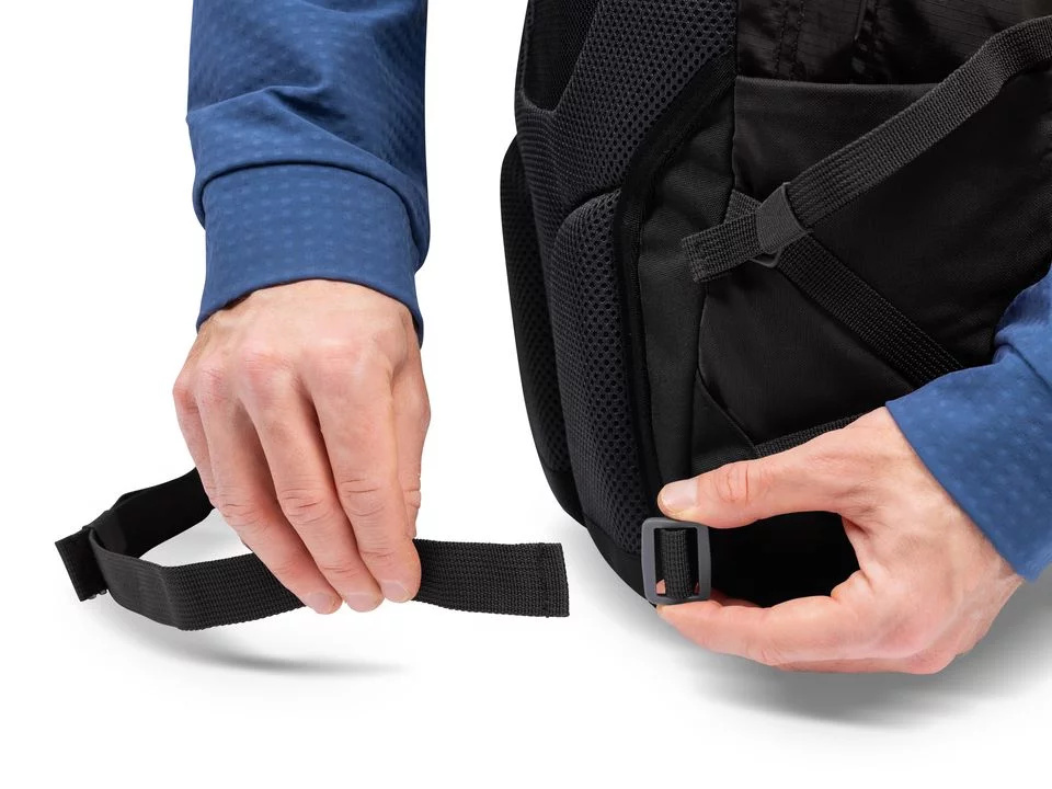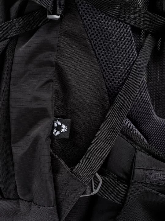 Jednokomorový černý turistický batoh o objemu 2 litrů je vyrobený z mechanicky odolného ripstop recyklovaného materiálu. Zádový systém Vario umožňuje proudění vzduch, pohodlí a stabilitu zajišťují nastavitelné polstrované ramenní popruhy a odnímatelný bederní popruh . Zádový systém i ramenní popruhy jsou zároveň vyrobené z prodyšné a rychleschnoucí mechanicky odolné síťoviny. Na hrudním popruhu, kterým zajistíte stabilitu ramenních popruhů, najdete pohotovostní píšťalku. Nechybí úchyty na trekové hole , dvě boční kapsy a přední síťovaná kapsa mohou sloužit pro rychlé odložení částí oblečení či drobností. Batoh lze jednoduše stáhnout bočními kompresními popruhy na menší objem. Nechybí integrovaná pláštěnka s reflexními prvky a kapsa na vodní rezervoár s vývodem. Batoh je vyroben z recyklovaného polyesteru (na výrobu jednoho kusu bylo zrecyklováno 10ks PET lahví o objemu 0,5l). Při výrobě tohoto produktu došlo tedy k významné úspoře energie a redukci uhlíkové stopy.