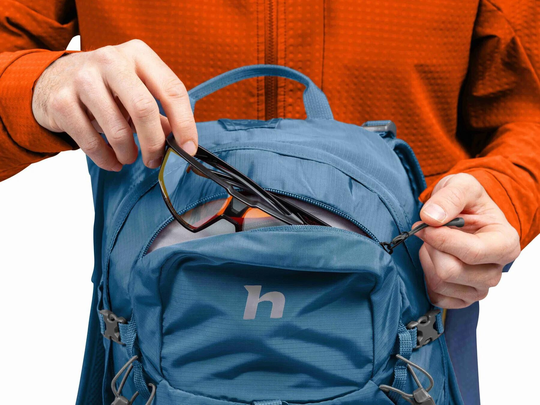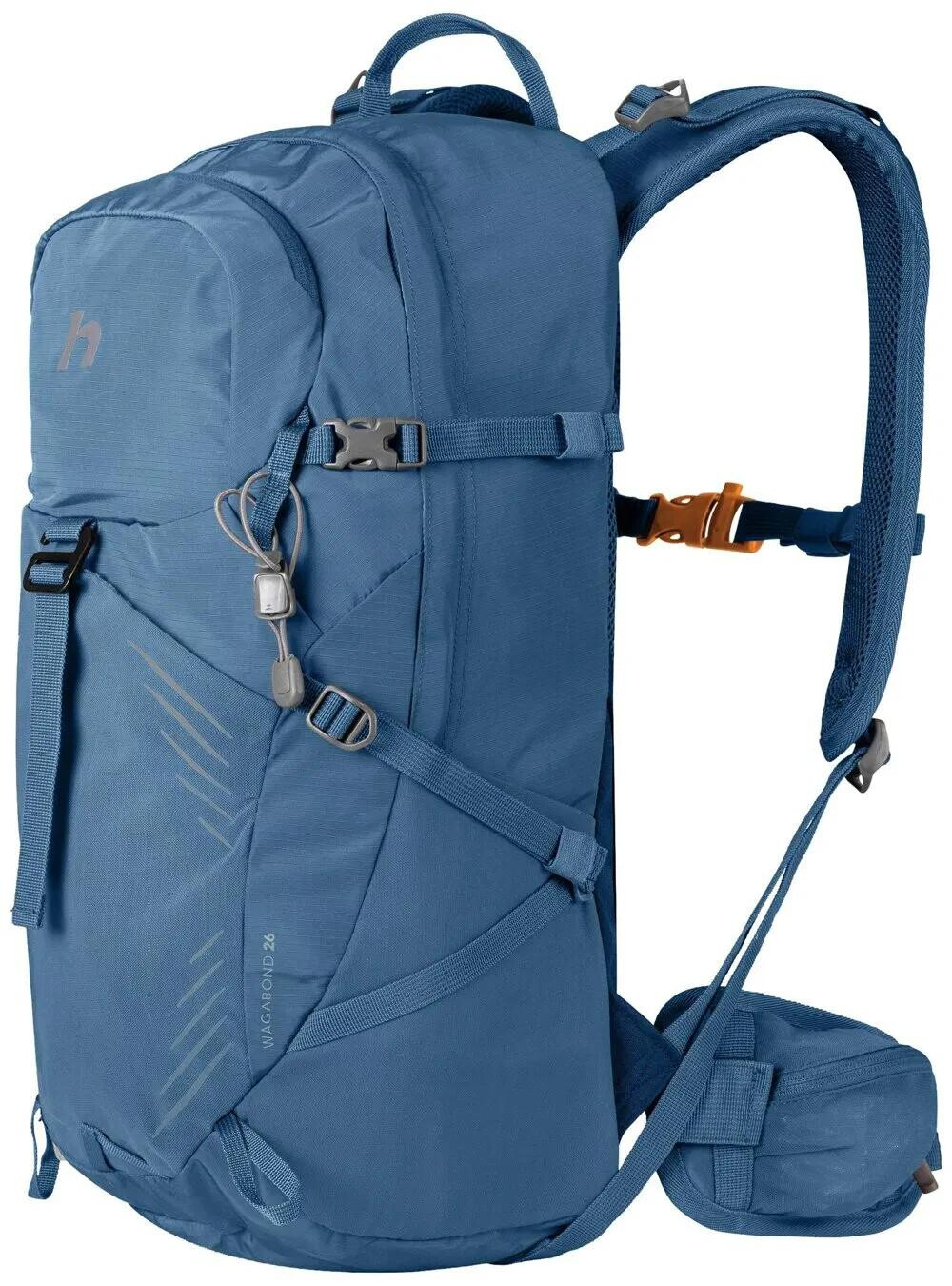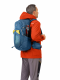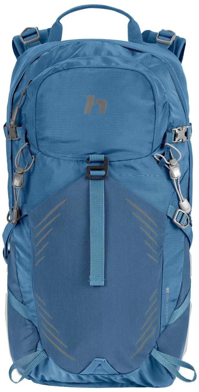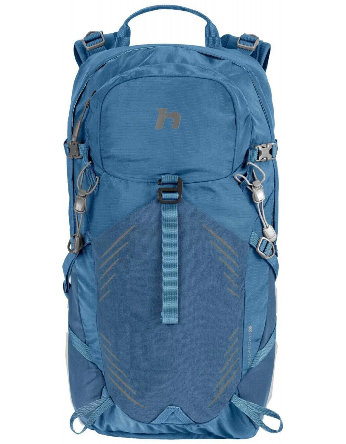 Jednokomorový modrý turistický batoh 26 litrů je vyrobený z mechanicky odolného ripstop recyklovaného materiálu. Zádový systém Vario umožňuje proudění vzduch, pohodlí a stabilitu zajišťují nastavitelné polstrované ramenní popruhy a bederní pás s kapsou.V případě potřeby lze bederní pás z batohu jednoduše odejmout. Zádový systém i ramenní popruhy jsou zároveň vyrobené z prodyšné a rychleschnoucí mechanicky odolné síťoviny. Na hrudním popruhu, kterým zajistíte stabilitu ramenních popruhů, najdete pohotovostní píšťalku. Nechybí úchyty na trekové hole či na jiný potřebný materiál. Dvě boční kapsy a přední síťovaná kapsa mohou sloužit pro rychlé odložení částí oblečení či drobností. Batoh lze jednoduše stáhnout bočními kompresními popruhy na menší objem. Nechybí integrovaná pláštěnka s reflexními prvky a kapsa na vodní rezervoár s vývodem. Batoh je vyroben z recyklovaného polyesteru (na výrobu jednoho kusu bylo zrecyklováno 12ks PET lahví o objemu 0,5l). Při výrobě tohoto produktu došlo tedy k významné úspoře energie a redukci uhlíkové stopy.