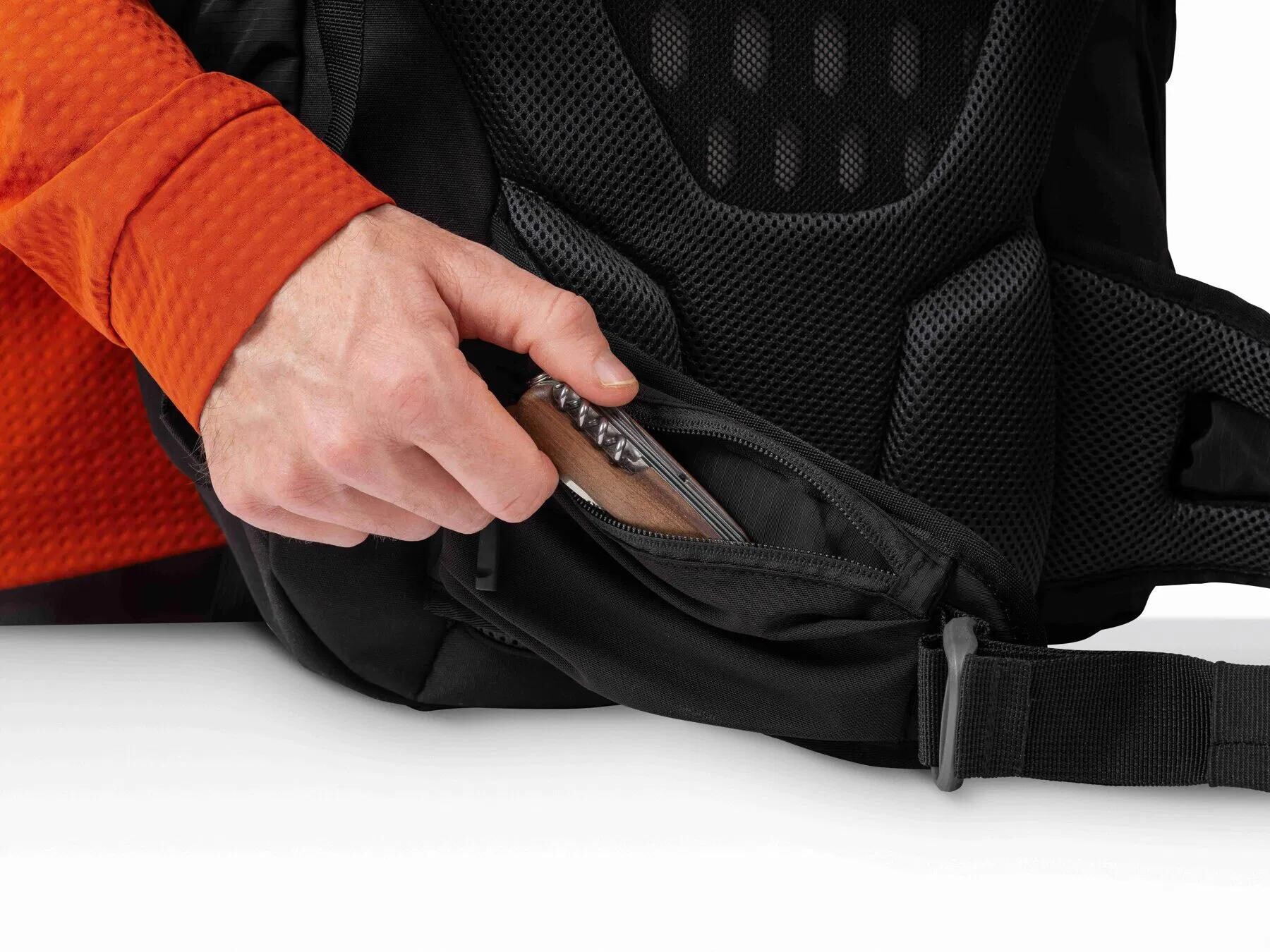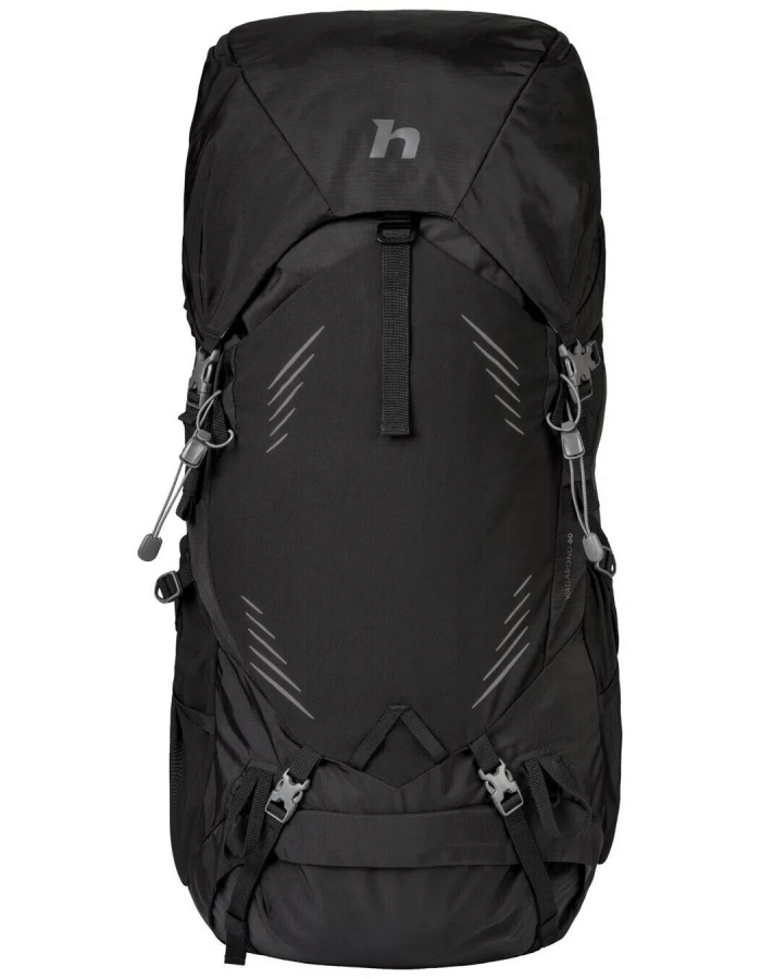 Dvoukomorový antrcitový batoh o objemu 60 litrů má horní a spodní vstup do hlavní komory. Posuvný zádový systém Vario na suchý zip lze přizpůsobit délce zad, stejně tak nastavitelné polstrované ramenní popruhy a bederní pás s kapsou. Zádový systém i ramenní popruhy jsou zároveň vyrobené z prodyšné a rychleschnoucí odolné síťoviny. V horní části ramen lze popruhem přitáhnout nebo povolit batoh, a tím i regulovat zatížení zad dle potřeb v terénu. Na hrudním popruhu, kterým zajistíte stabilitu ramenních popruhů, najdete pohotovostní píšťalku. Víko má vnitřní a vnější kapsu pro lepší rozčlenění drobných věcí na cestu. Nechybí úchyty na cepín nebo trekové hole či na jiný potřebný materiál. Dvě prostorné boční kapsy a přední síťovaná kapsa mohou sloužit pro rychlé odložení částí oblečení či drobností. Batoh lze jednoduše stáhnout bočními kompresními popruhy na menší objem. Nechybí integrovaná pláštěnka s reflexními prvky a kapsa na vodní rezervoár s vývodem na boku.