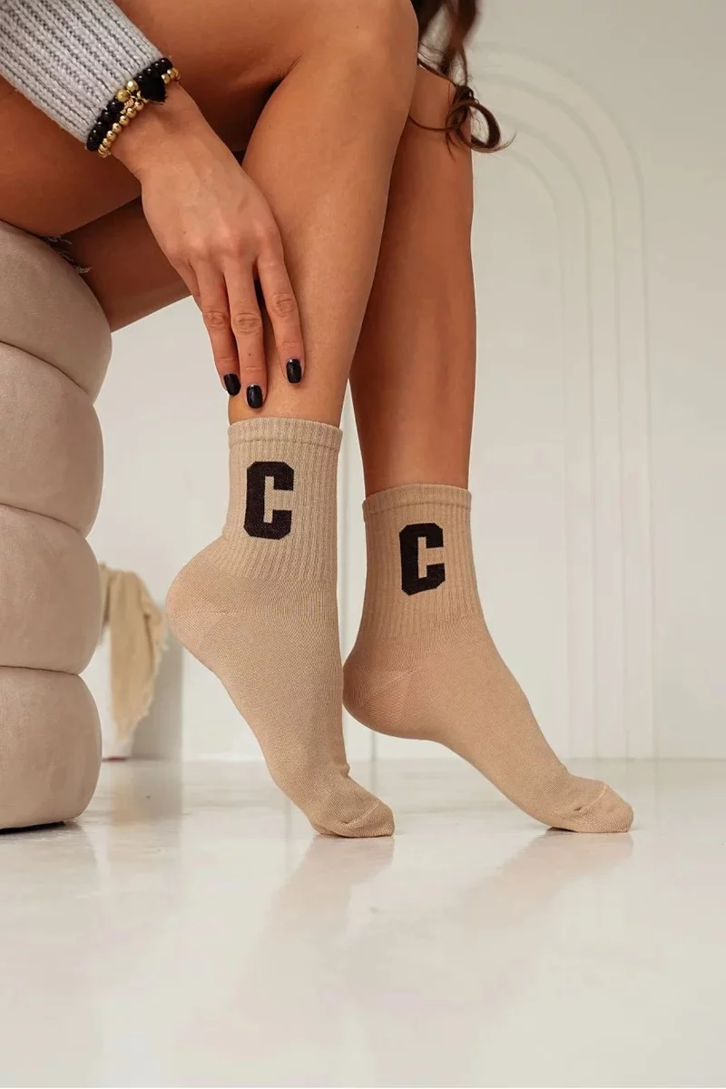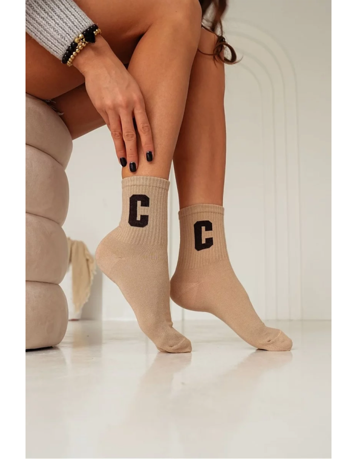 Bavlněné Dámské Ponožky S Písmenem C Béžové