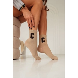 Bavlněné Dámské Ponožky S Písmenem C Béžové 37-41