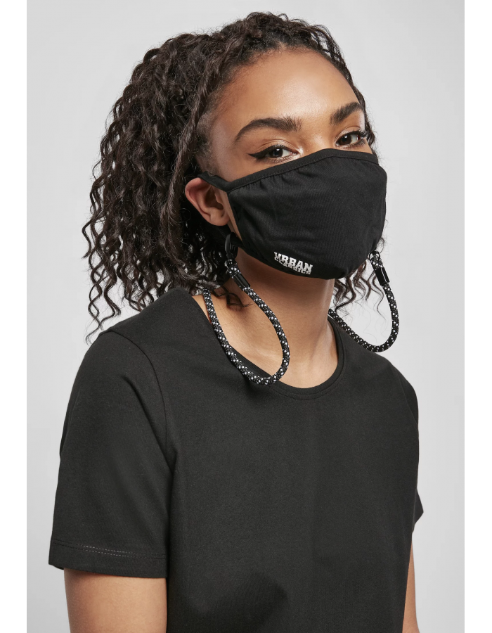Chytrá sada obsahuje šikovné nástroje pandemické ochrany. Především pleťová maska z bavlny a polyesteru s jednoduchým vzhledem a drobným potiskem Urban Classics. Kromě toho má nositel přístup ke stahovací šňůrce se dvěma sponami pro zajištění masky kolem krku. Bezpečnostní sadu doplňuje značkový háček na prsty, který otevírá dvířka, aniž byste se museli dotknout povrchu kůží.