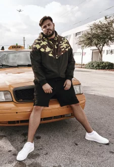 Rovný pánský blůson má dvě velké našité náprsní kapsy s klopami. Dále obsahuje široký límec, vnitřní kapsu a přední kovový zip. Použitý oversize střih se spadlými rameny dělá hezkou postavu. Pánský blůson je vyroben z polyesteru a je podšitý taftem.