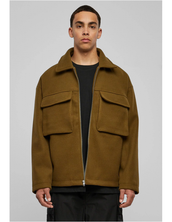 Rovný pánský blůson má dvě velké našité náprsní kapsy s klopami. Dále obsahuje široký límec, vnitřní kapsu a přední kovový zip. Použitý oversize střih se spadlými rameny dělá hezkou postavu. Pánský blůson je vyroben z polyesteru a je podšitý taftem.