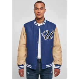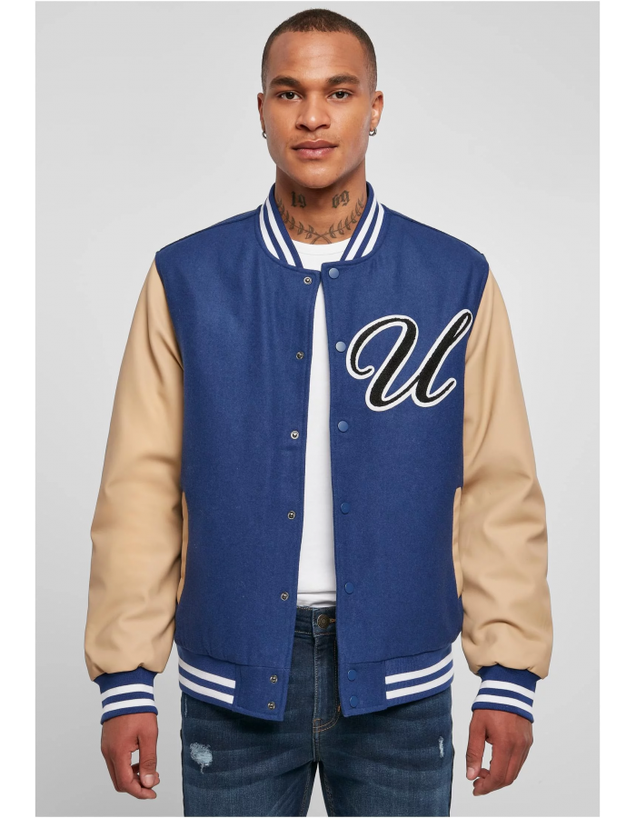Tato pánská vysokoškolská bunda, která dýchá sportovními vibracemi, nabízí kontrastní rukávy z umělé kůže, zatímco trup je vyroben ze směsi vlněné tkaniny. Velké, prošívané „U“ zvýrazňuje hruď a vnitřek bundy je podšitý taftem. Zavedený vysokoškolský design dodávají pruhy na širokých žebrových manžetách na rukávech a lemu a stejně stylový nízký límec. Sportovní pánská bunda se zapíná na patentní knoflík a je vybavena dvěma bočními kapsami a jednou vnitřní kapsou. Ležérní oversize střih zajišťuje maximální pohodlí při nošení.