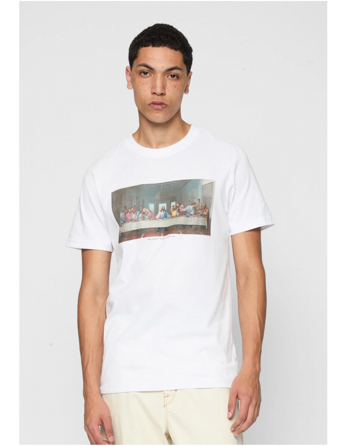 Jak exkluzivní je vaše klika?! Ukažte světu s tímto ikonickým tričkem, že každého do svého kruhu jen tak nepustíte! Potisk na přední straně zobrazuje světoznámý obraz Ježíše a jeho učedníků při Poslední večeři a nápis „Nemůžete se s námi pověsit“, který z tisku činí skutečnou výpověď.