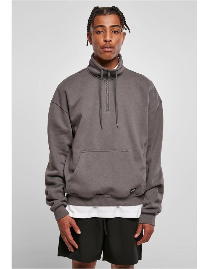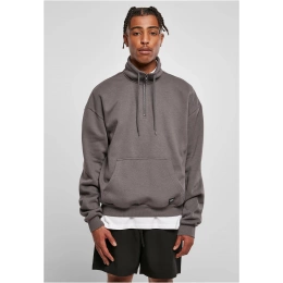 Tato příjemná pánská mikina z froté z organické bavlny uspokojí pohodlí a styl. Má vysoký stojáček se stahovací šňůrkou a klopou na zip. Mezi další prvky patří klokaní kapsa s nášivkou Urban Classics a široké žebrované manžety na rukávech a lemu. Velkoryse střižená ramena dokonale ladí s vydařeným volným střihem pánského svetru.