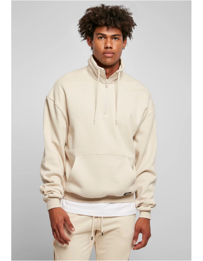 Tato příjemná pánská mikina z froté z organické bavlny uspokojí pohodlí a styl. Má vysoký stojáček se stahovací šňůrkou a klopou na zip. Mezi další prvky patří klokaní kapsa s nášivkou Urban Classics a široké žebrované manžety na rukávech a lemu. Velkoryse střižená ramena dokonale ladí s vydařeným volným střihem pánského svetru.