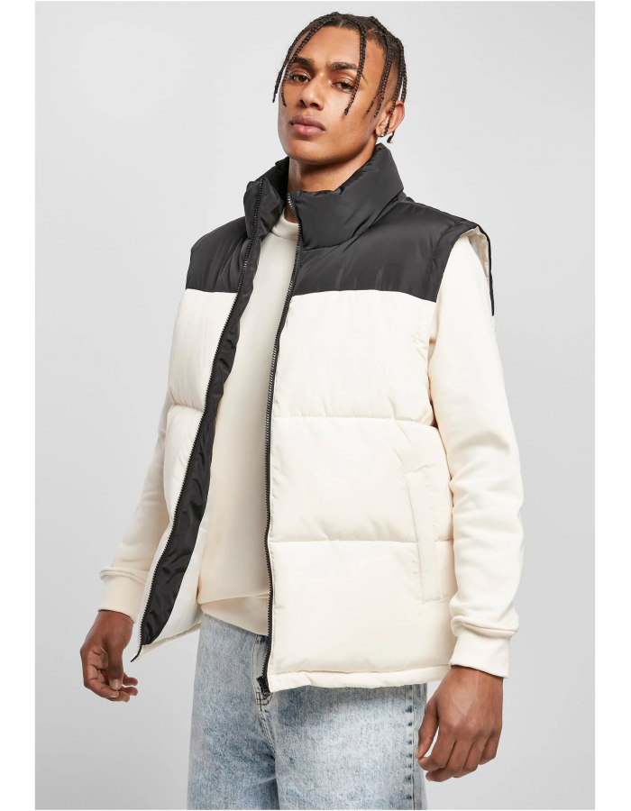 S bohatým polstrováním, praktickým stojáčkem a předním zipem je pánská nabíraná vesta výrazným módním kouskem. Ke designu jsou přidány dvě boční kapsy a vnitřní kapsa. Pánská vesta je vyrobena z polyesteru a taftu, má volný střih.