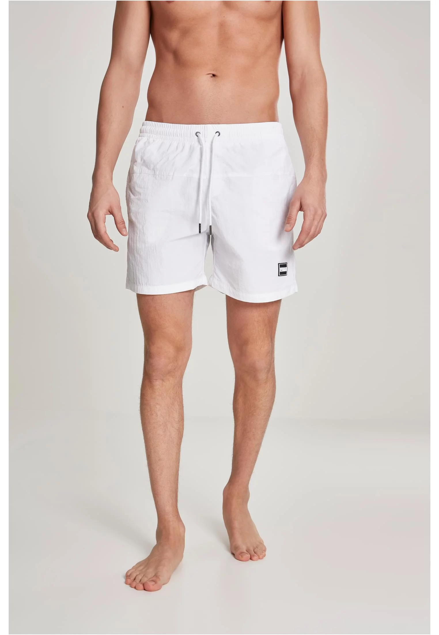 Není důvod jít do podzemí! Block Swim Shorts od URBAN CLASSICS jsou vaším ideálním společníkem na léto. Optické detaily jako nášivka s logem a bílé stahovací šňůrky dotvářejí sportovní cool vzhled. Dvě boční kapsy a jedna zadní kapsa na zip nabízí místo pro vaše důležité věci.