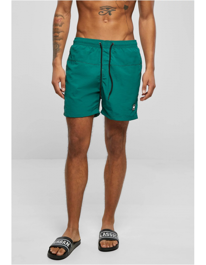 Není důvod jít do podzemí! Block Swim Shorts od URBAN CLASSICS jsou vaším ideálním společníkem na léto. Optické detaily jako nášivka s logem a bílé stahovací šňůrky dotvářejí sportovní cool vzhled. Dvě boční kapsy a jedna zadní kapsa na zip nabízí místo pro vaše důležité věci.