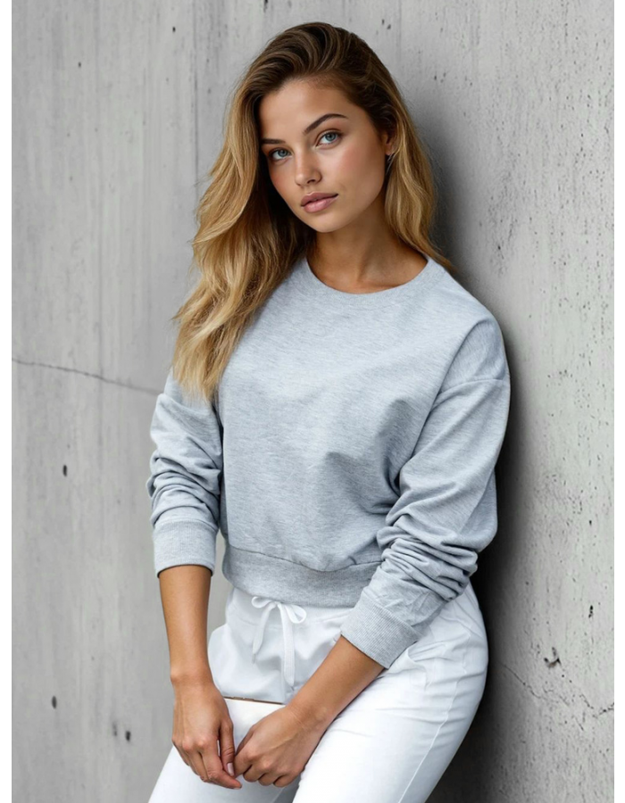 Klasyczna bluza o prostym kroju to połączenie wygody i ponadczasowego stylu. Model wykonany z miękkiej bawełny z dodatkiem poliestru zapewnia komfort noszenia przez cały dzień. Gładka powierzchnia bez nadruków sprawia, że bluza doskonale pasuje do jeansów, legginsów lub dresów, tworząc uniwersalny element codziennej garderoby.
