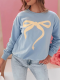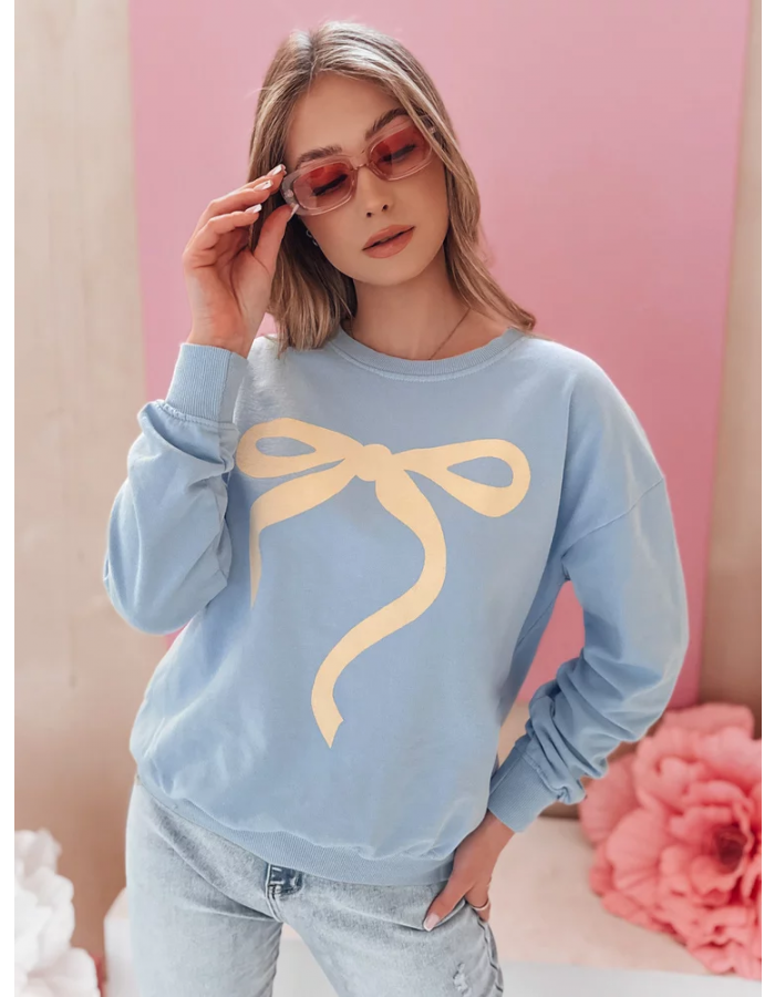 Bluza damska oversize z uroczym nadrukiem kokardy, która dodaje dziewczęcego uroku każdej stylizacji. Wykonana z miękkiej, oddychającej tkaniny, zapewnia komfort noszenia przez cały dzień. Klasyczny krój z okrągłym dekoltem i ściągaczami na rękawach sprawia, że idealnie układa się na sylwetce. Uniwersalny rozmiar pasuje od XS do L. Doskonała na codzienne wyjścia.