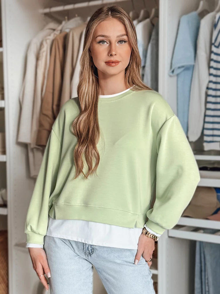 Lekka, oversize’owa bluza damska o luźnym kroju, który zapewnia wygodę i swobodę ruchów. Modne rozcięcia na górnej warstwie dodają jej charakteru, a ściągacze przy rękawach podkreślają casualowy styl. Uniwersalny rozmiar pasuje od XS do L. Idealna na co dzień, świetnie komponuje się z jeansami i sneakersami, tworząc modny, niezobowiązujący look.