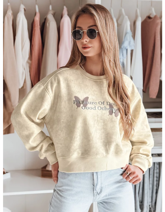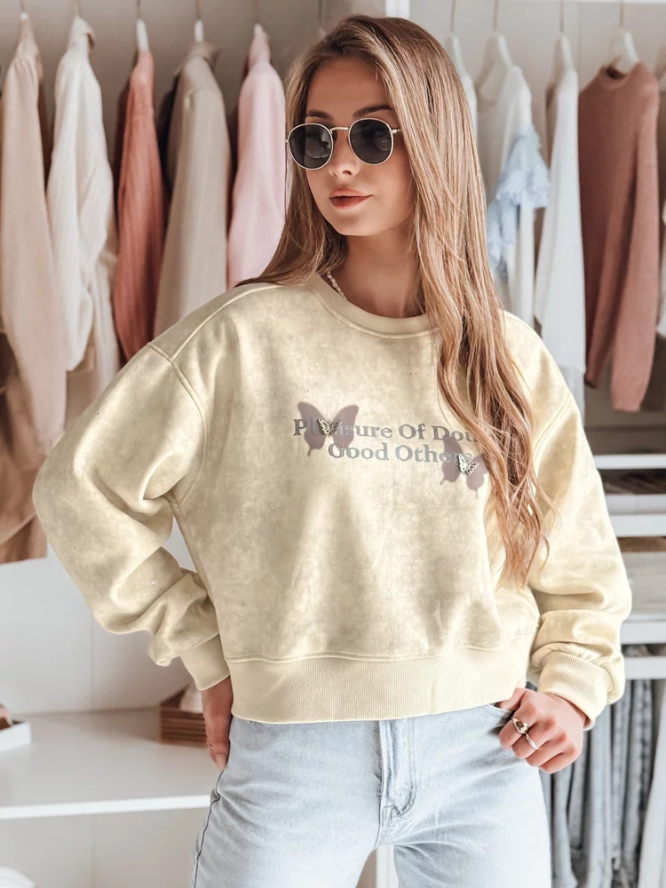 Bluza damska oversize tie-dye w motyle SPARKI ecru Dstreet BY1404 Uniwersalny