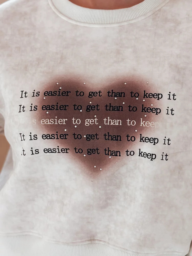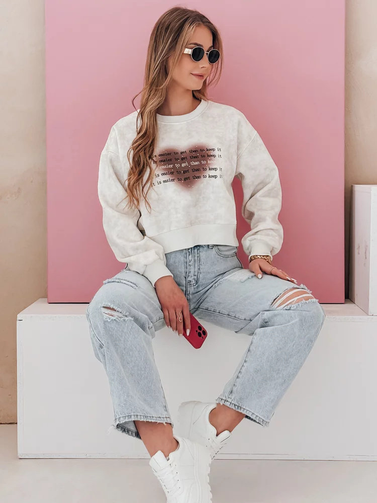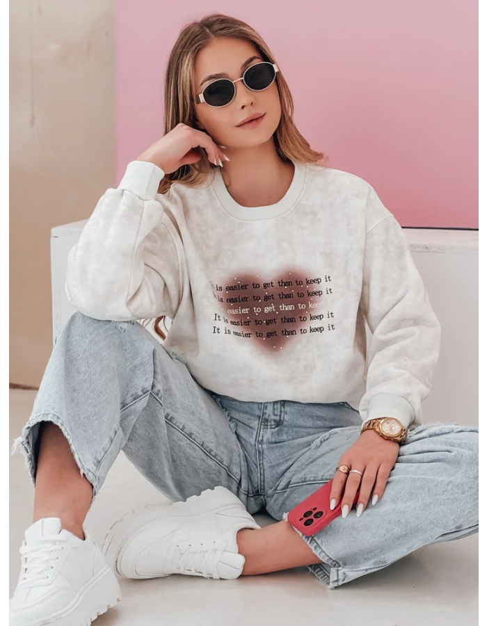 Bluza damska oversize o unikalnym efekcie tie-dye, idealna na codzienne stylizacje. Wygodny krój i elastyczne ściągacze zapewniają komfort noszenia, a nadruk z napisami oraz sercem dodaje oryginalnego charakteru. Model wkładany przez głowę, świetnie komponuje się z jeansami i sneakersami, tworząc idealną podstawę do casualowego look'u.