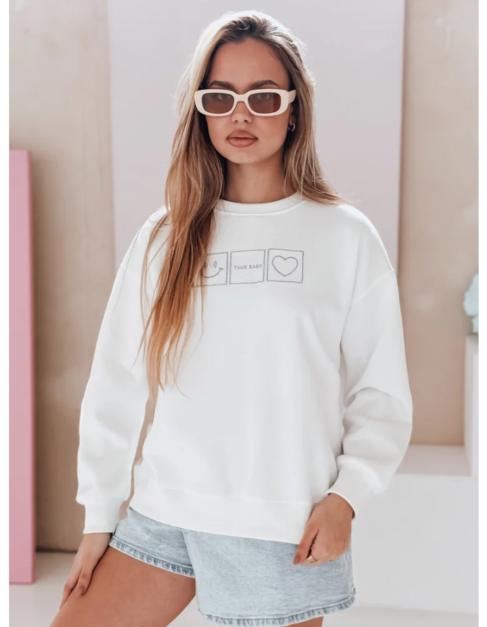 Bluza damska oversize z haftem EASYJOY biała Dstreet BY1514 Uniwersalny
