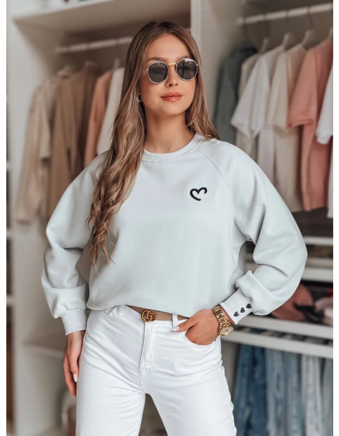 Bluza damska oversize typu one size z przyciągającymi uwagę detalami to połączenie wygody z subtelnym romantyzmem. Na piersi umieszczony został uroczy haft serca z napisem „Monday”, a mankiety zdobią trzy małe haftowane serduszka. Uniwersalny rozmiar pasuje od XS do L. Model wykończony jest elastycznymi ściągaczami na dole i przy rękawach, dzięki czemu dobrze dopasowuje się do sylwetki. Idealna bluza na wiosenne dni.