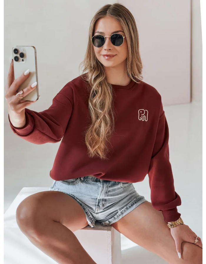 Bluza damska oversize z haftem SOFTSLON bordowa Dstreet BY1430 Uniwersalny