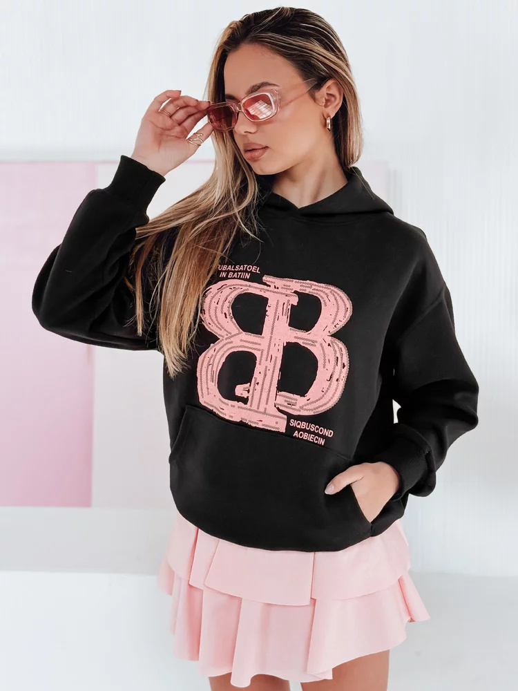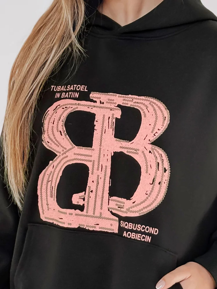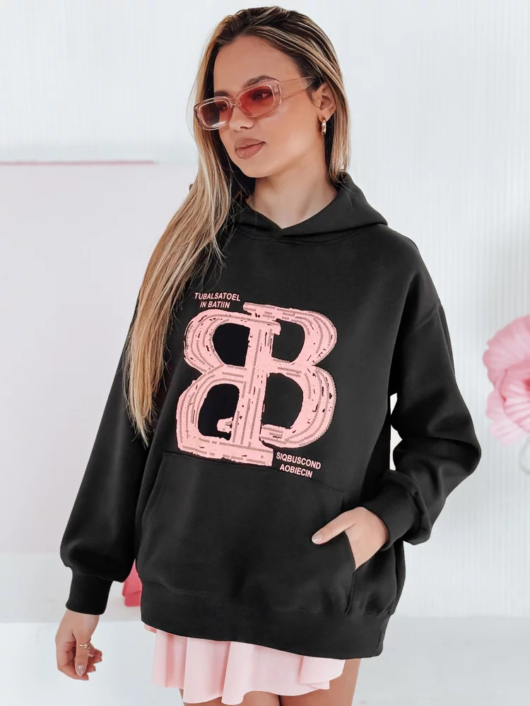 Bluza damska oversize o luźnym kroju, idealna na co dzień. Model z kapturem i ozdobną kieszenią typu kangur, który łączy wygodę z modnym stylem. Ozdobiona wyrazistym nadrukiem z napisami, nadającym jej charakteru. Uniwersalny rozmiar pasuje od XS do L. Ściągacze przy rękawach i na dole dbają o komfort noszenia. Uniwersalny fason sprawdzi się w casualowych stylizacjach, tworząc doskonałą bazę do różnych outfitów.