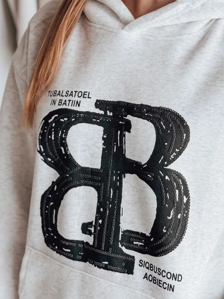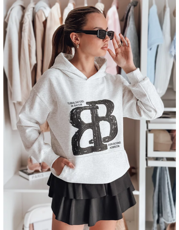 Bluza damska oversize o luźnym kroju, idealna na co dzień. Model z kapturem i ozdobną kieszenią typu kangur, który łączy wygodę z modnym stylem. Ozdobiona wyrazistym nadrukiem z napisami, nadającym jej charakteru. Uniwersalny rozmiar pasuje od XS do L. Ściągacze przy rękawach i na dole dbają o komfort noszenia. Uniwersalny fason sprawdzi się w casualowych stylizacjach, tworząc doskonałą bazę do różnych outfitów.