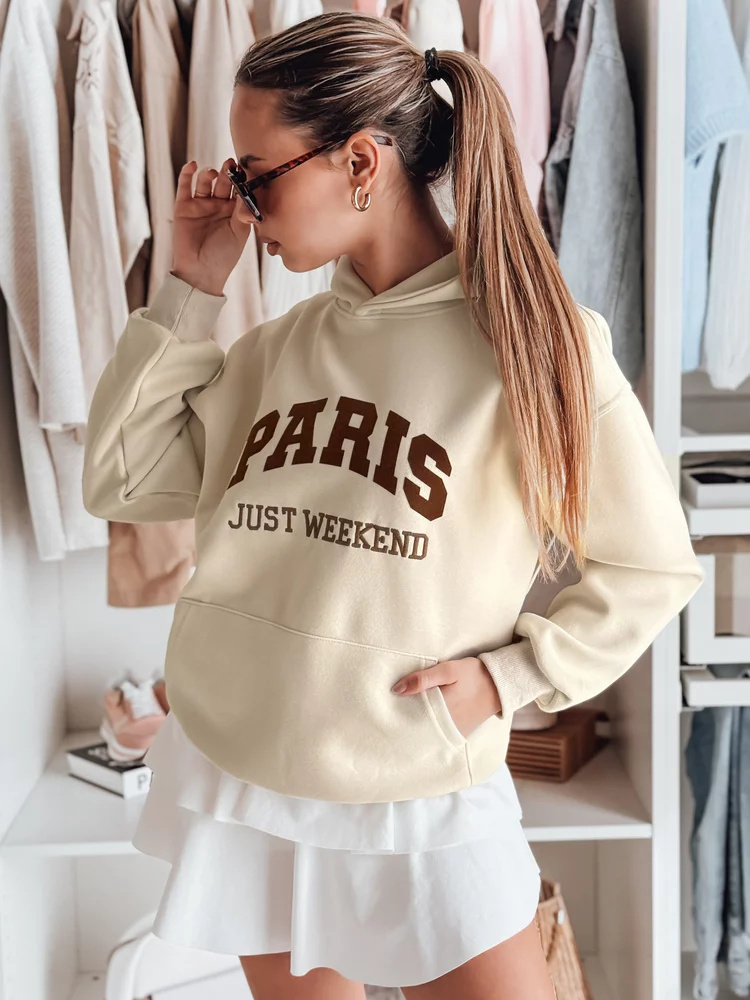 Casualowa bluza, która sprawdzi się na każdą okazję - idealna na luźniejsze dni, spacery czy weekendowe wyjścia. Oversizowy krój zapewnia maksymalną wygodę. Uniwersalny rozmiar pasuje od XS do L. Kieszeń typu kangur sprawia, że jest bardziej praktyczna, a kaptur ochroni przed chłodniejszymi dniami. Nadruk z kontrastowym napisem przyciąga uwagę, a haftowane detale dodają unikalnego charakteru. Świetnie komponuje się zarówno z legginsami, jak i jeansami.