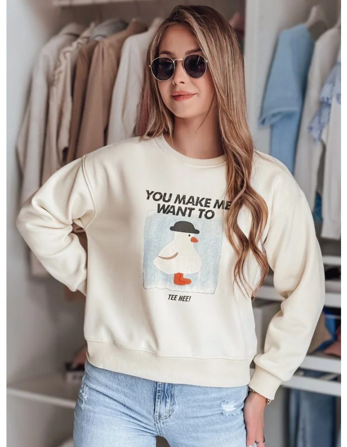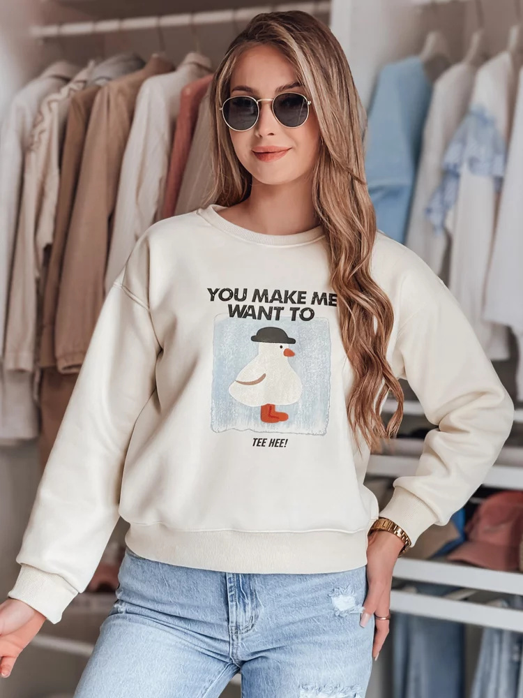 Bluza damska oversize z nadrukiem GOOSHY ecru Dstreet BY1427 Uniwersalny
