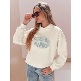 Bluza damska o swobodnym kroju łączy codzienny komfort z subtelnym detalem dekoracyjnym. Miękka dzianina bawełniana zapewnia wygodę noszenia przez cały dzień. Ozdobny nadruk na przodzie nadaje całości lekkości i casualowego charakteru. Model sprawdzi się w codziennych stylizacjach miejskich oraz w zestawach typu casual.