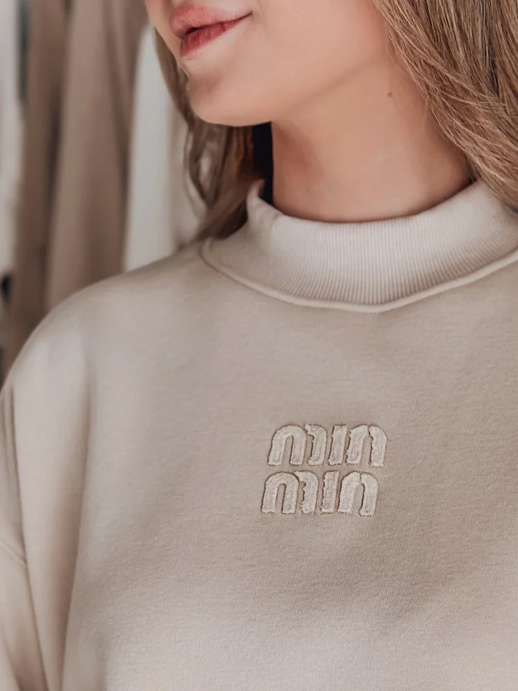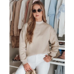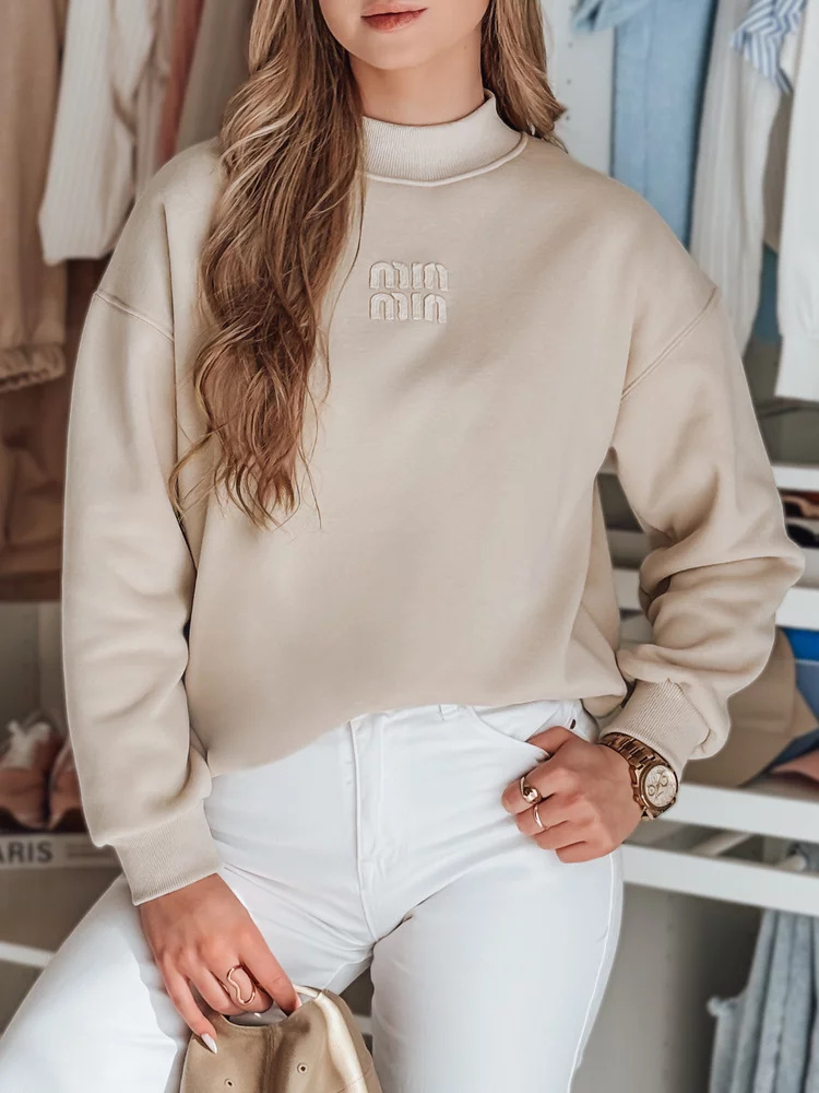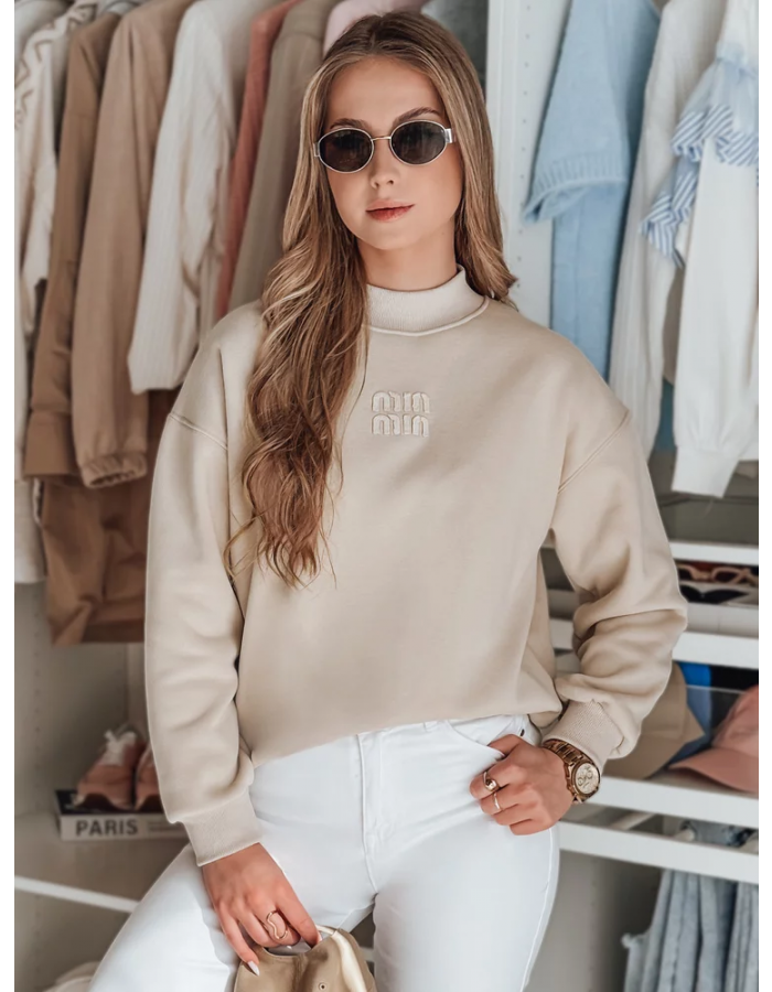 Bluza oversize o luźnym kroju, wykonana z przyjemnego materiału premium o miękkiej fakturze. Uniwersalny rozmiar pasuje od XS do L. Model wkładany przez głowę, z wysokim kołnierzem i elastycznymi ściągaczami na dole oraz przy rękawach. Minimalistyczny design wzbogacony naszytym napisem dodaje subtelnej elegancji oraz efektu 3D. Idealna do casualowych i sportowych stylizacji.