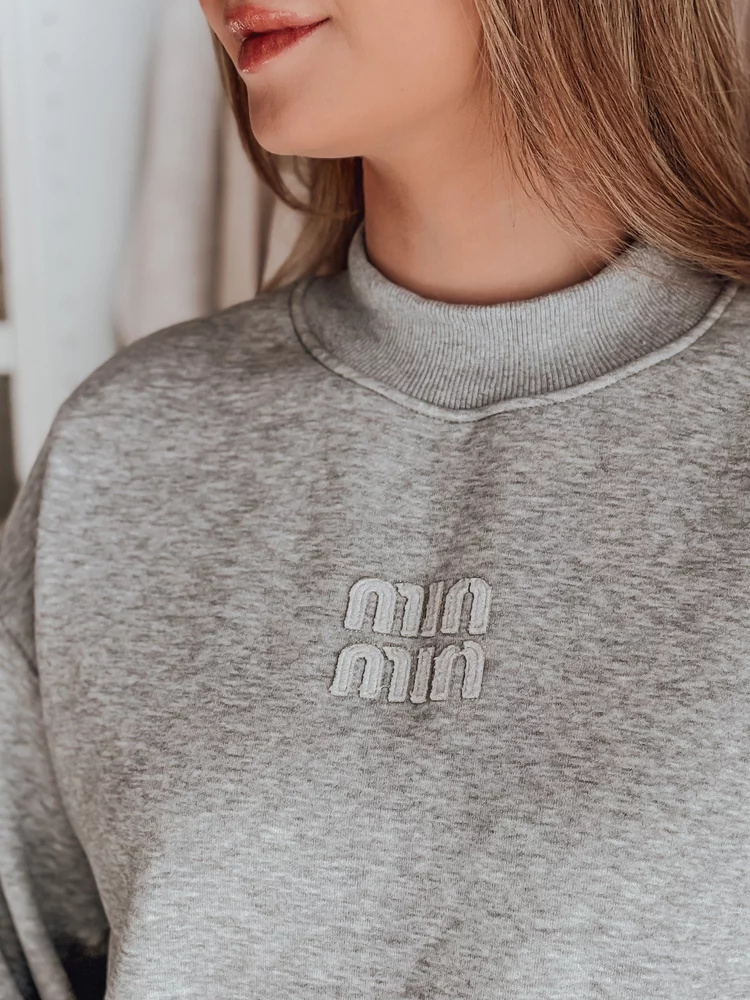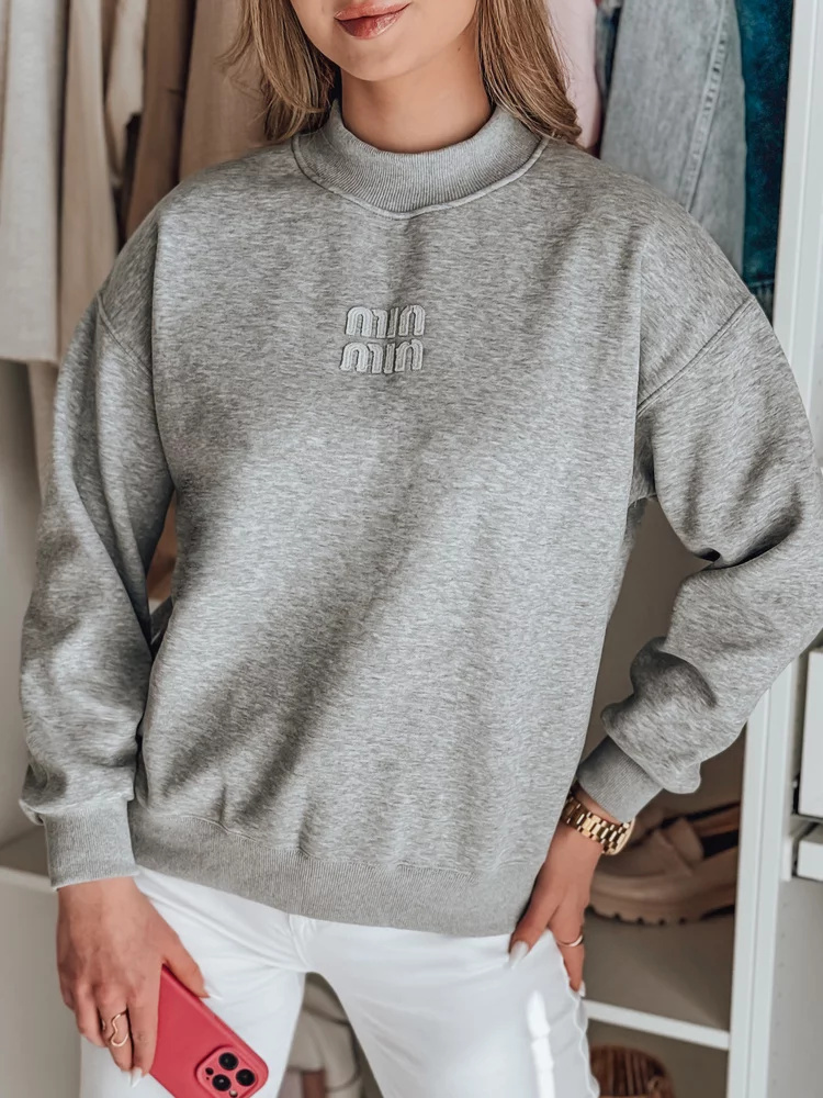Bluza oversize o luźnym kroju, wykonana z przyjemnego materiału premium o miękkiej fakturze. Uniwersalny rozmiar pasuje od XS do L. Model wkładany przez głowę, z wysokim kołnierzem i elastycznymi ściągaczami na dole oraz przy rękawach. Minimalistyczny design wzbogacony naszytym napisem dodaje subtelnej elegancji oraz efektu 3D. Idealna do casualowych i sportowych stylizacji.