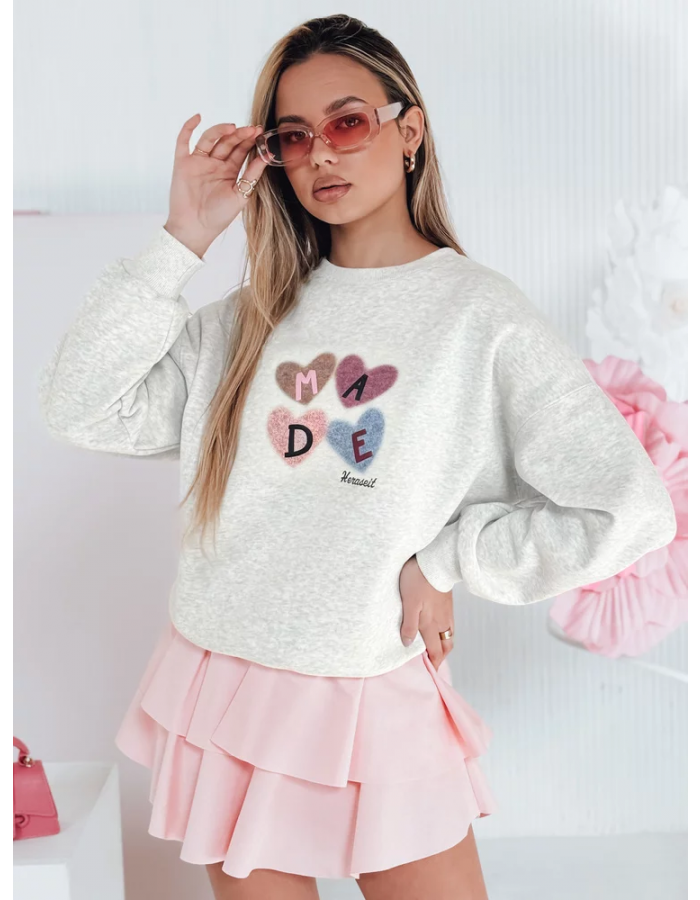 Bluza damske oversiz z sercami MADELIN szara Dstreet BY1459 Uniwersalny