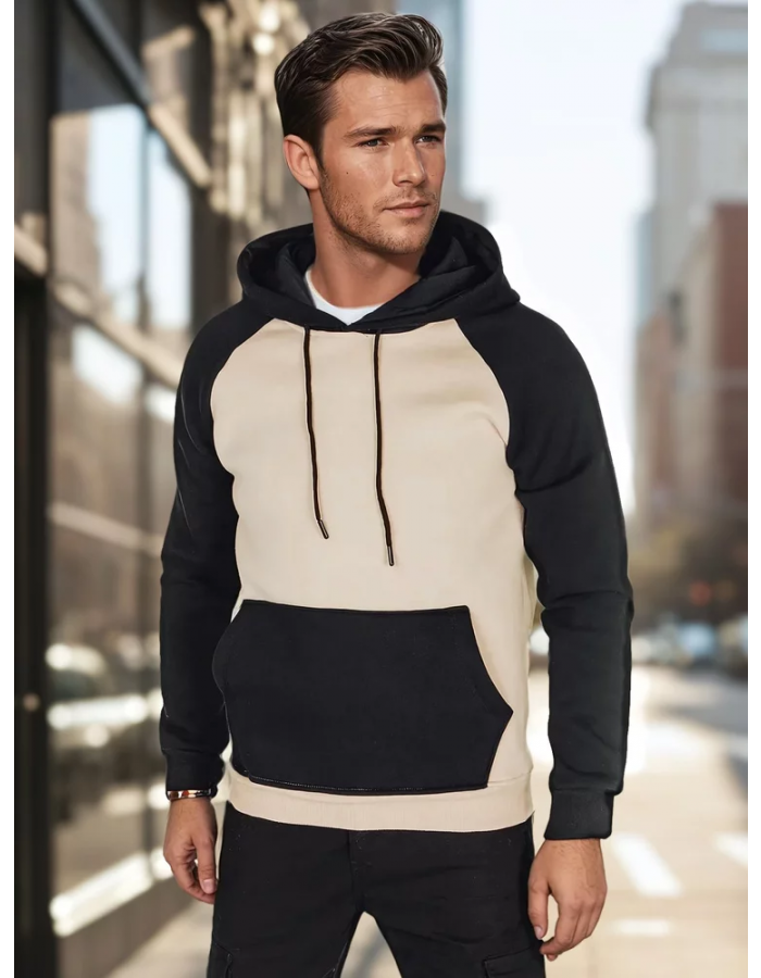 Wygodna bluza męska z praktycznym kapturem i regulacją na sznurek. Luźny krój zapewnia komfort noszenia, a kieszeń kangurka dodaje funkcjonalności. Ściągacze gwarantują dobre dopasowanie do sylwetki. Świetna propozycja na chłodniejsze dni, pasująca do wielu casualowych outfitów.