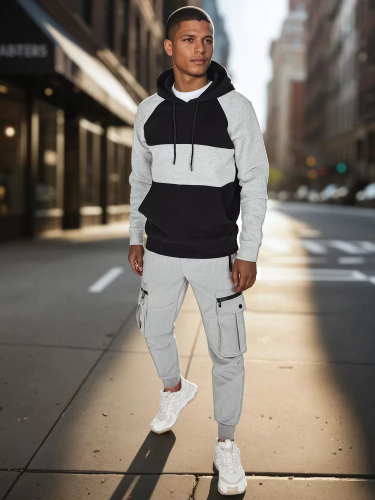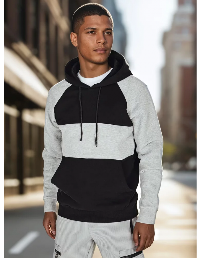 Bluza męska z kapturem w casualowym stylu, idealna na co dzień. Miękki materiał zapewnia wygodę, a modny design z kolorowymi panelami nadaje jej nowoczesnego charakteru. Kieszeń kangurka to modne rozwiązanie, a regulowany kaptur pozwala dostosować styl do pogody. Doskonała do jeansów i sportowych butów.