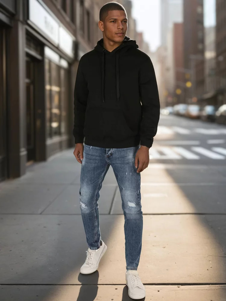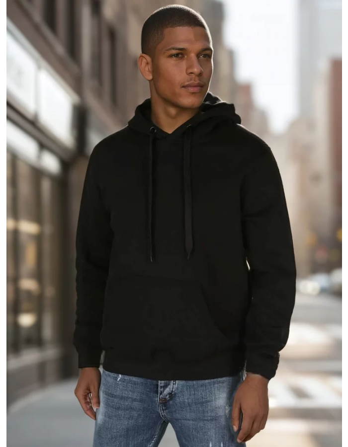 Bluza męska z kapturem i kieszenią na froncie to połączenie miejskiego stylu i komfortu noszenia. Minimalistyczny design i uniwersalny fason sprawiają, że model świetnie sprawdza się na co dzień. Idealna propozycja na wiosnę i chłodniejsze poranki.