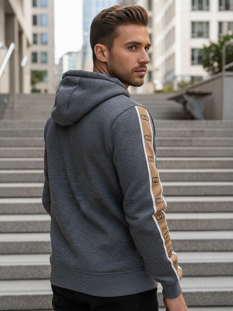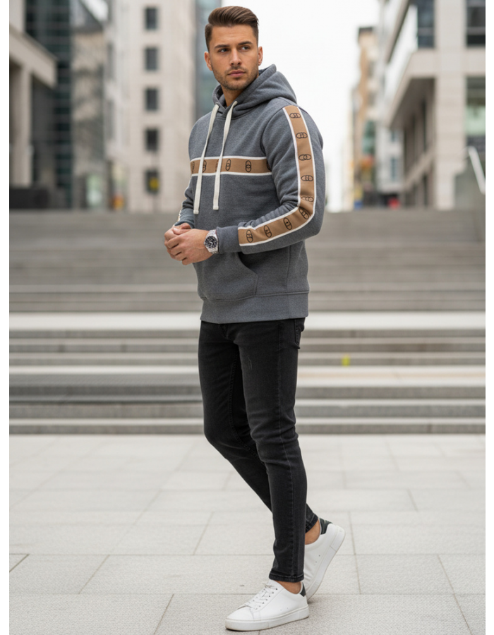 Model doskonale komponuje się z jeansami, joggerami lub spodniami typu slim, pozwalając tworzyć uniwersalne zestawy o sportowym charakterze. Lampasy stanowią wyrazisty element, który wyróżnia bluzę na tle klasycznych fasonów.