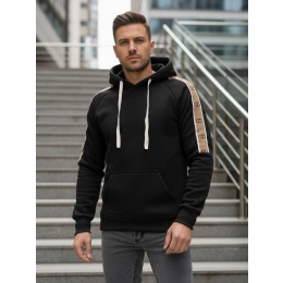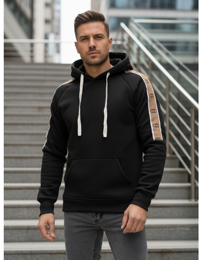Wygodna bluza męska o sportowym kroju sprawdzi się w codziennych stylizacjach i aktywnościach na świeżym powietrzu. Miękki materiał zapewnia komfort noszenia, a klasyczny fason pozostaje uniwersalny przez cały rok. Regulowany kaptur zwiększa funkcjonalność, natomiast kontrastowe taśmy na rękawach nadają jej nowoczesnego i wyrazistego charakteru.