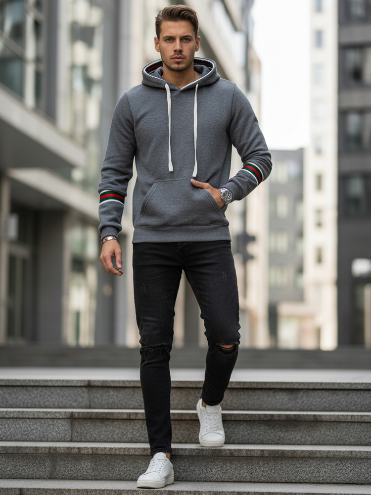 Bluza męska z kapturem BX5946 szara