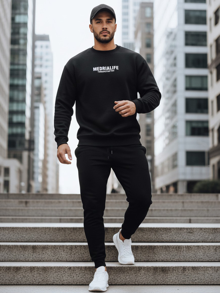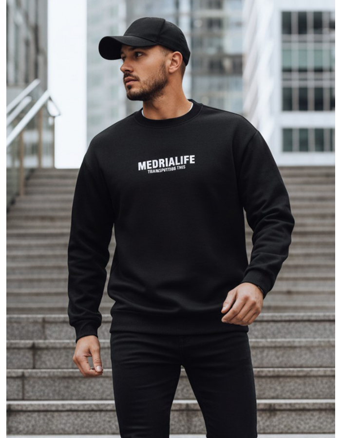Bluza męska o klasycznym kroju, idealna do codziennych stylizacji. Model z okrągłym dekoltem i ściągaczami przy rękawach oraz na dole, które zapewniają dopasowanie i komfort noszenia. Wnętrze z delikatnym meszkiem polarowym gwarantuje ciepło i miękkość w chłodniejsze dni.