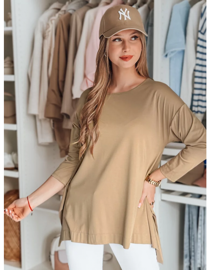 Bluzka damska oversize o luźnym, swobodnym kroju, który zapewnia pełen komfort noszenia. Wykonana z miękkiego materiału, idealnie układa się na sylwetce. Uniwersalny rozmiar pasuje od XS do L. Rozcięcia po bokach oraz wydłużony tył nadają jej modny wygląd. W zestawie stylowy wisiorek, który dopełnia całość. Must-have dla miłośniczek wygody!