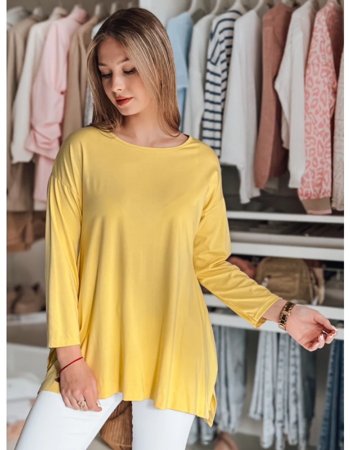 Bluzka damska oversize o luźnym, swobodnym kroju, który zapewnia pełen komfort noszenia. Wykonana z miękkiego materiału, idealnie układa się na sylwetce. Uniwersalny rozmiar pasuje od XS do L. Rozcięcia po bokach oraz wydłużony tył nadają jej modny wygląd. W zestawie stylowy wisiorek, który dopełnia całość. Must-have dla miłośniczek wygody!